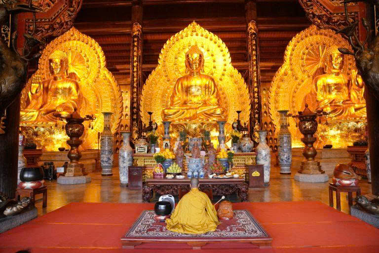 Tạm biệt Tràng An cũng là lúc giữa trưa. Sau một khoảng nghỉ ngơi, ăn trưa tại nhà hàng với đầy ắp tiếng cười cùng những câu chuyện vui vẻ của buổi đi chơi ban sáng cũng đã trút bỏ hết những mệt mỏi của cả tuần vừa qua. Ngay sau đó, cả đoàn lại tiếp tục hướng về ngôi chùa Bái Đính. Tại đây, mọi người ai cũng có những lời cầu nguyện cho riêng mình và mong cho Doanh nghiệp có 1 năm Giáp Thìn có thật nhiều những thắng lợi.
