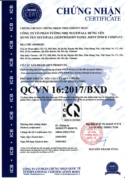 Sản phẩm Nucewall đã được chứng nhận hợp quy